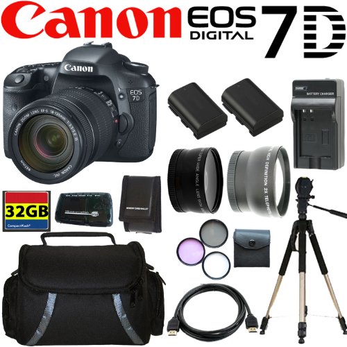 Canon EOS 7D 18 MP CMOS Digital SLR Camera with 3-inch LCD and 18-135mm f/3.5-5.6 IS UD Standard Zoom Lens + 32GB Advanced Accessory Kit